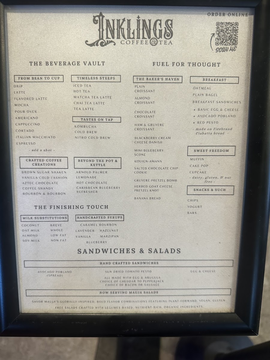 If you’re curious about what’s brewing at Inklings Coffee And Tea Menu, you’re in for something comforting yet a little creative. Tucked along 530 Main St, Pleasanton, CA 94566, this spot keeps things interesting without overcomplicating your order. The coffee lineup covers all the essentials-smooth lattes, bold espresso, and rich mochas-but it’s the little twists and seasonal specials that make you pause and try something new.